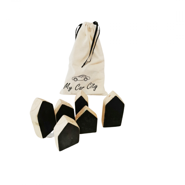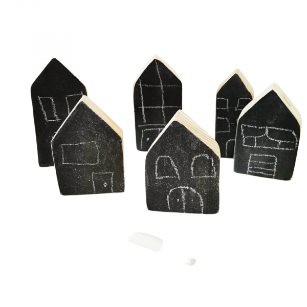 6 different sized houses or buildings with a chalk side so children can draw their own buildings.